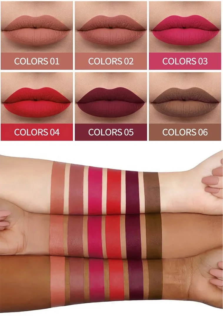 Country/Region of Manufacture Type Long Lasting Waterproof Velvet Matte Finish – Smooth, non-drying formula for a soft and elegant look. Long-Lasting & Waterproof – Stays on for hours without smudging or fading. Two Stunning Collections – Available in 6 nude shades for a natural look and 6 reddish shades for a bold, striking finish. Lightweight & Comfortable – Feels soft on the lips without cracking or feeling heavy. Easy Application – Glides on effortlessly with a precise applicator for even coverage.